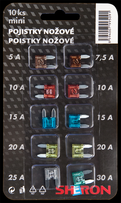 Automobilové pojistky 5A-10A. Typy provedení nožových pojistek: mini velikost.